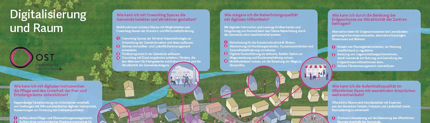 Wie die Digitalisierung unsere Dörfer, Städte und Landschaft verändert und wie gerade kleine und mittlere Gemeinden die Digitalisierung für eine nachhaltige Landschafts- und Raumentwicklung nutzen können, wird in einem Zukunftsbild nachhaltige Digitalisierung aufgezeigt.